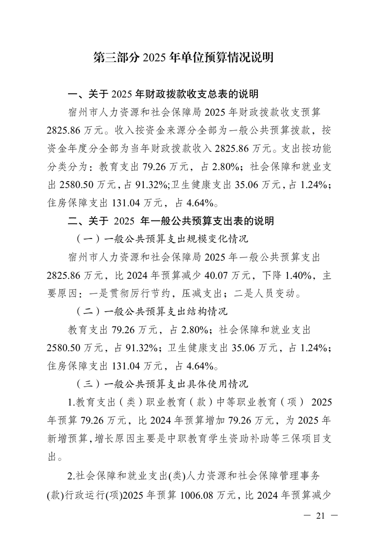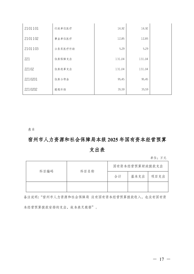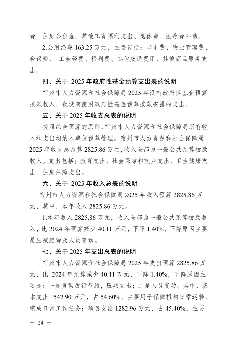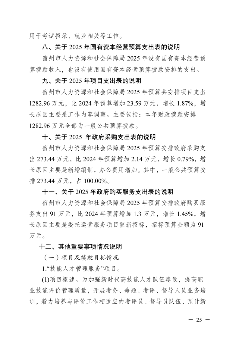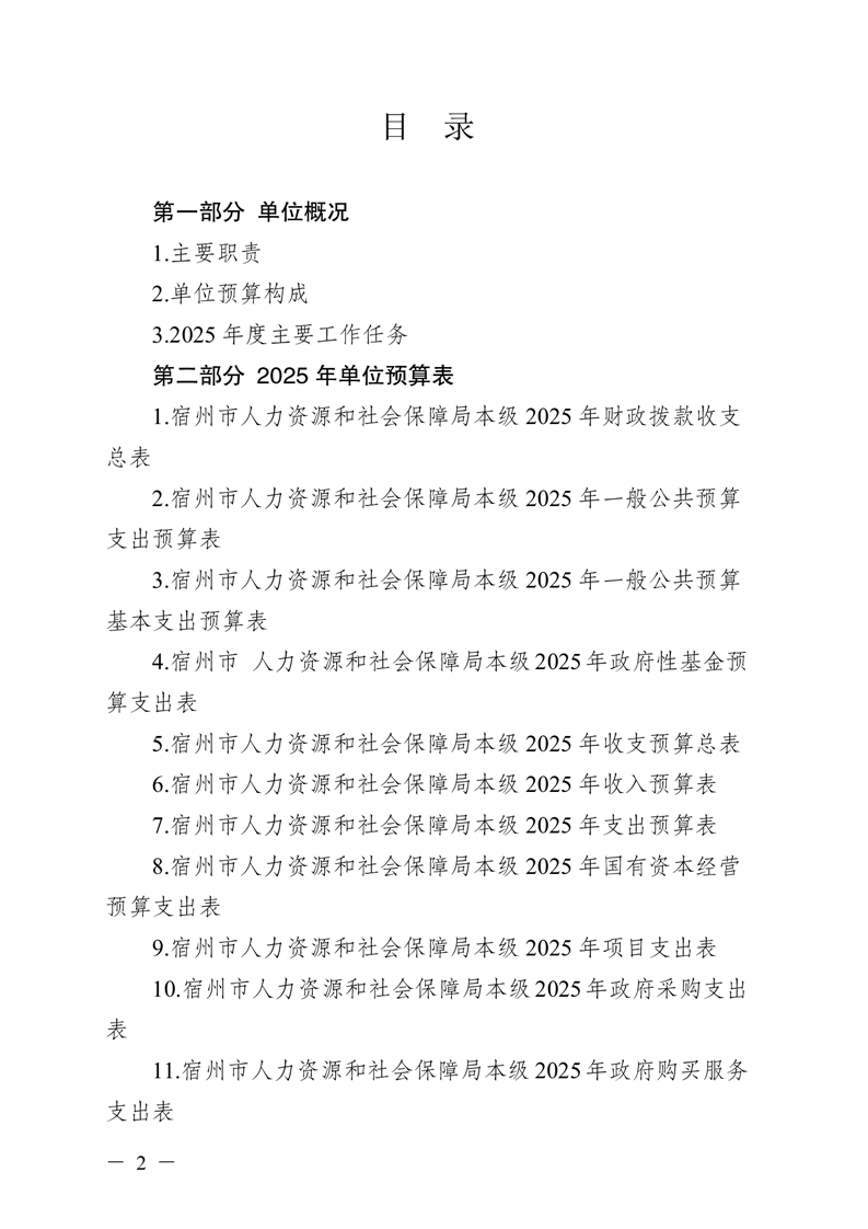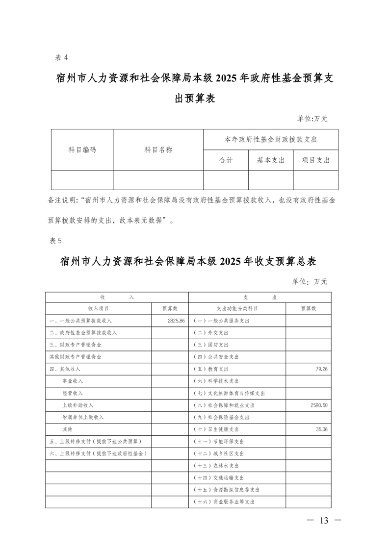 宿州市人力资源和社会保障局本级2025年预算