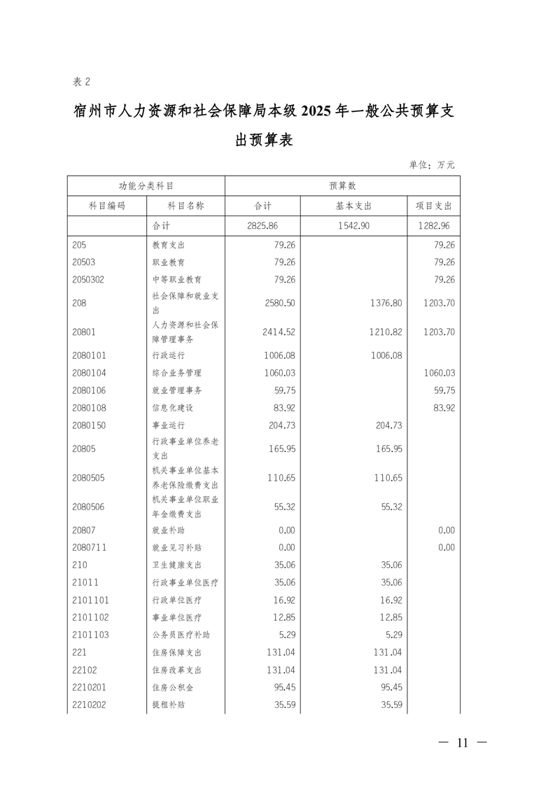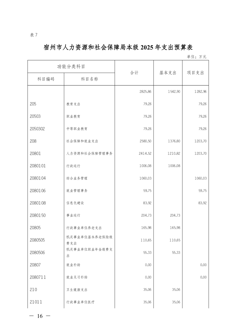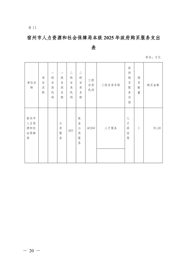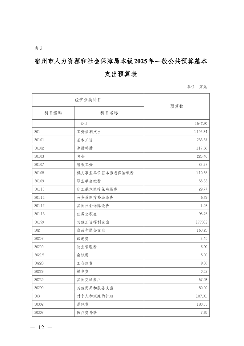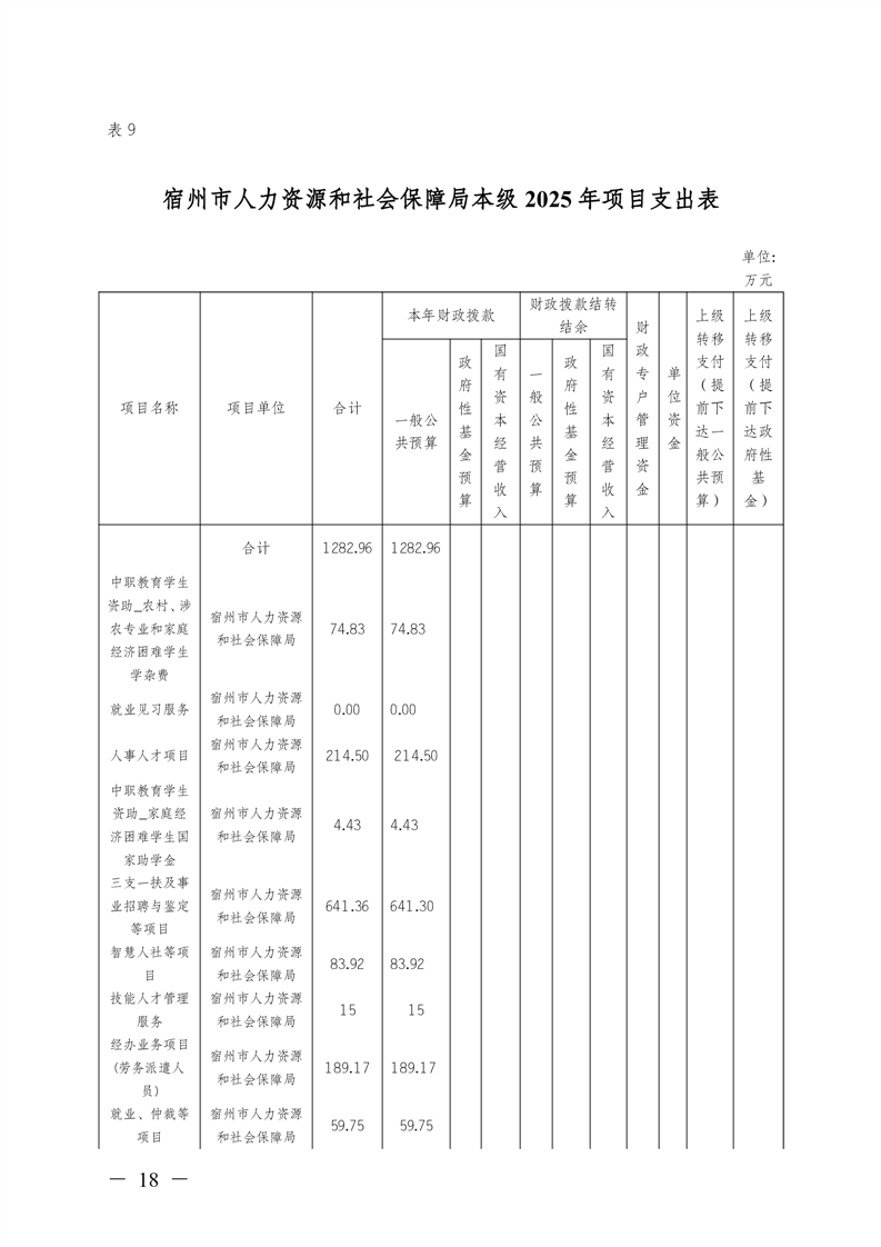 宿州市人力资源和社会保障局本级2025年预算