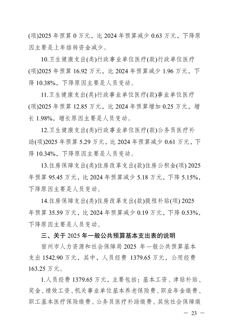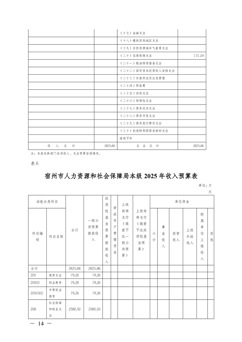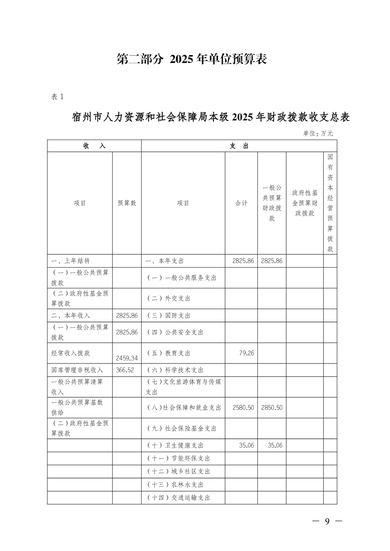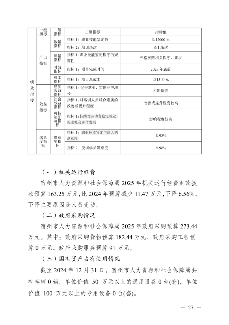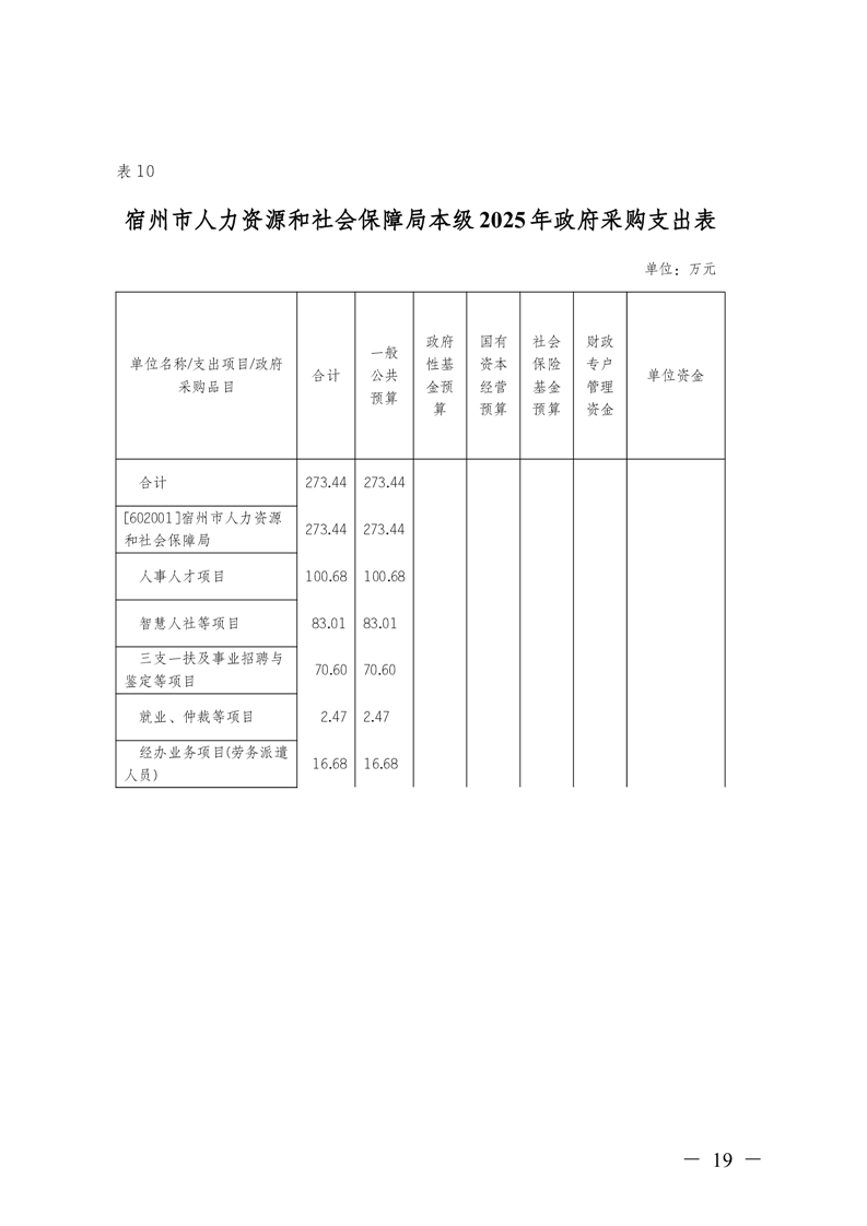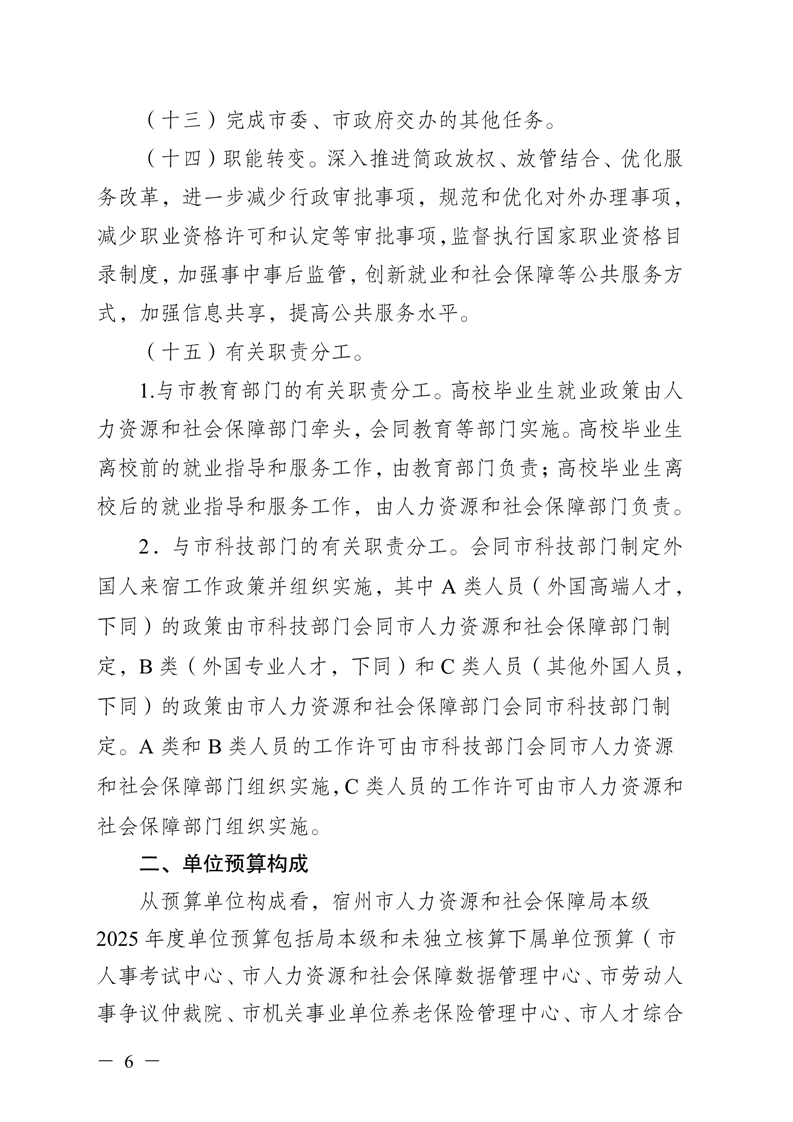 宿州市人力资源和社会保障局本级2025年预算