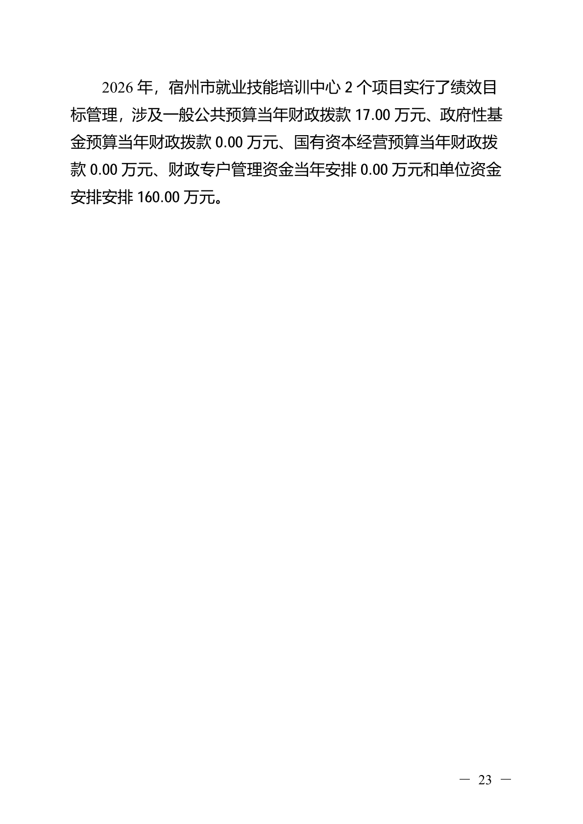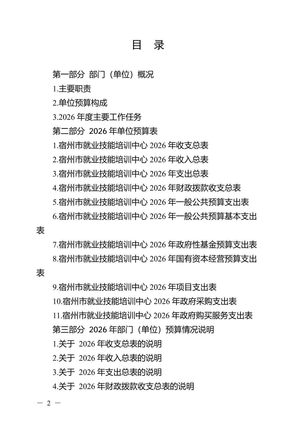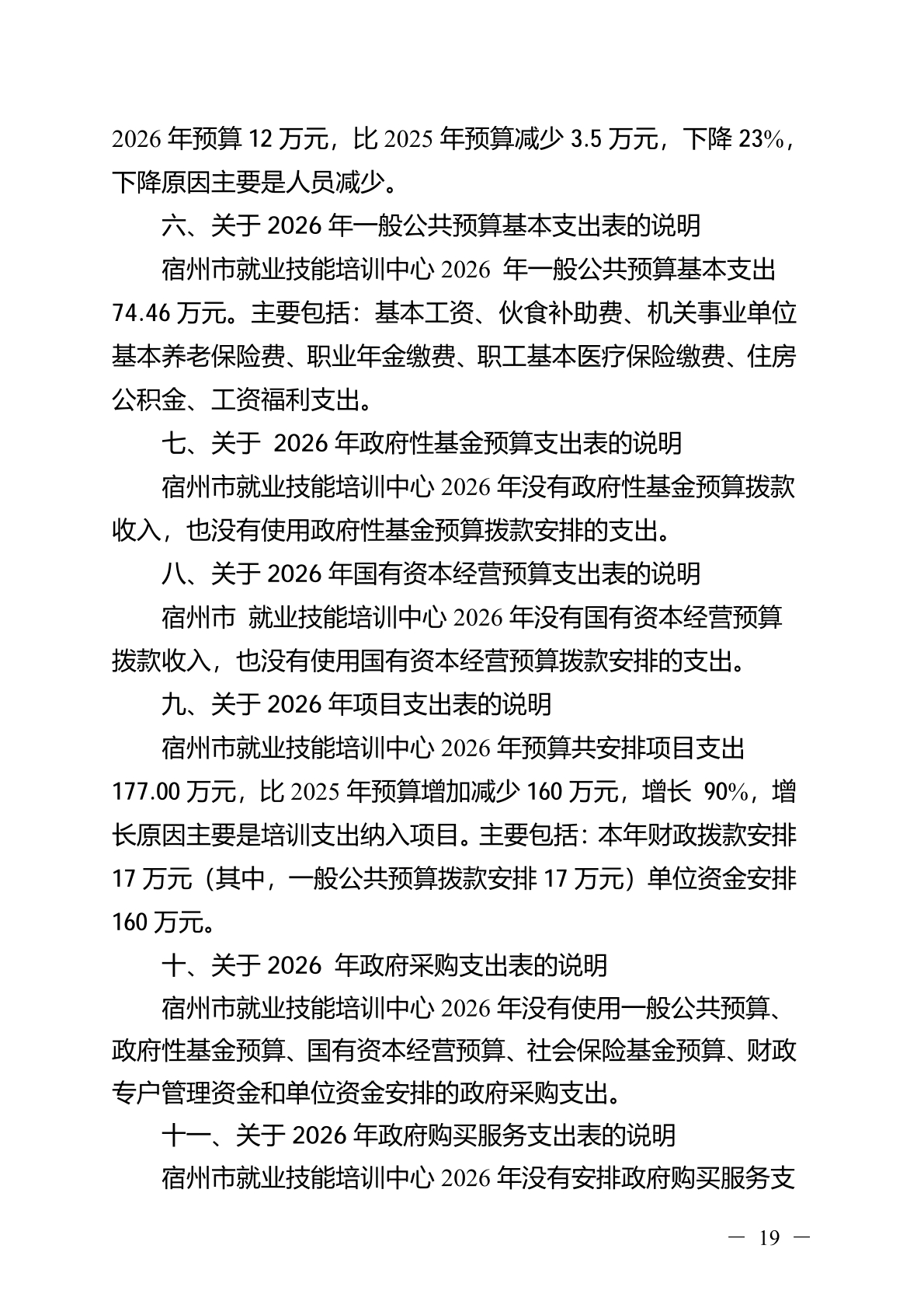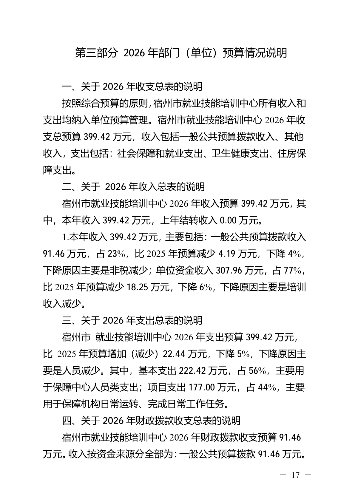宿州市就业技能培训中心2026 年部门(单位)预算