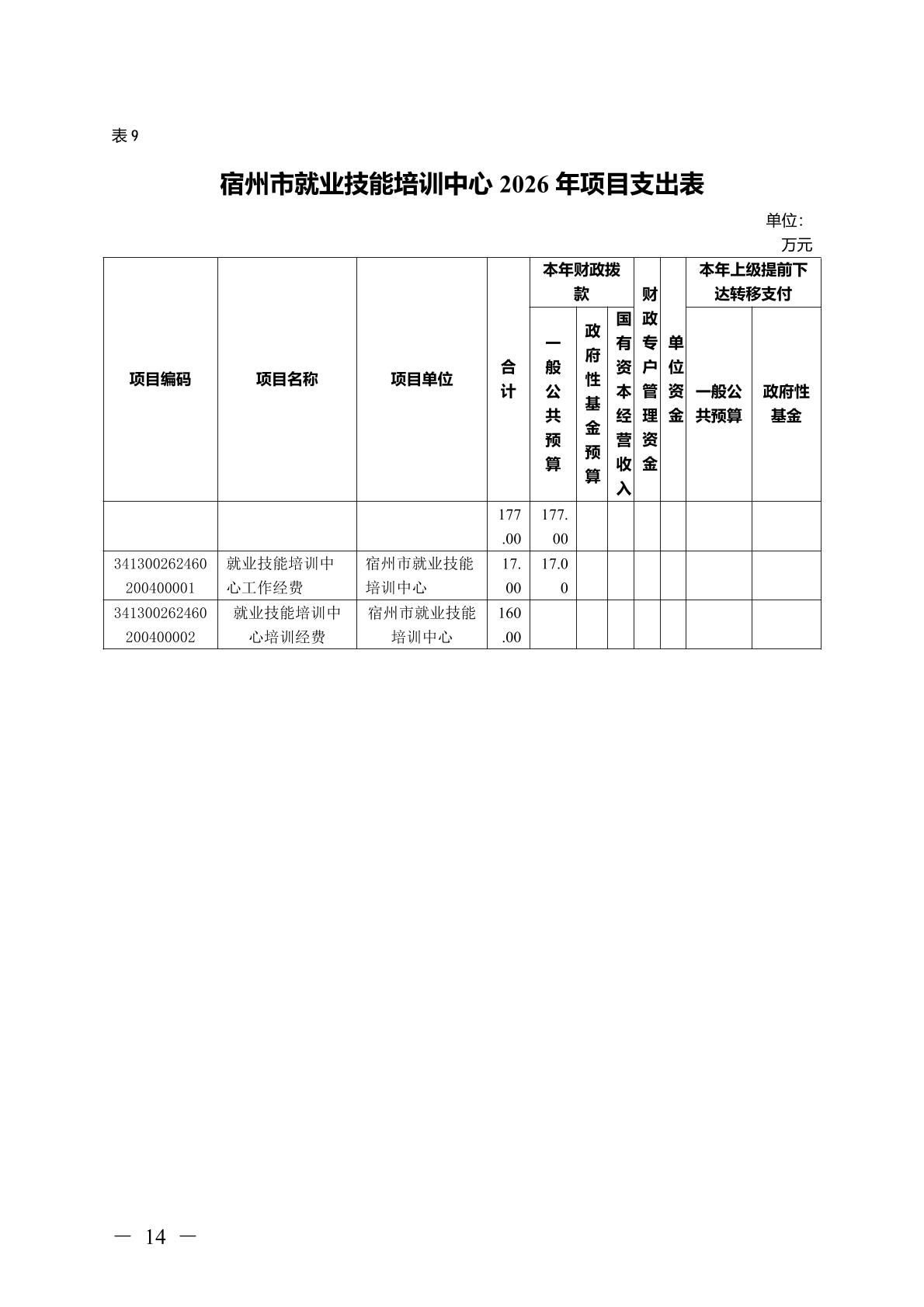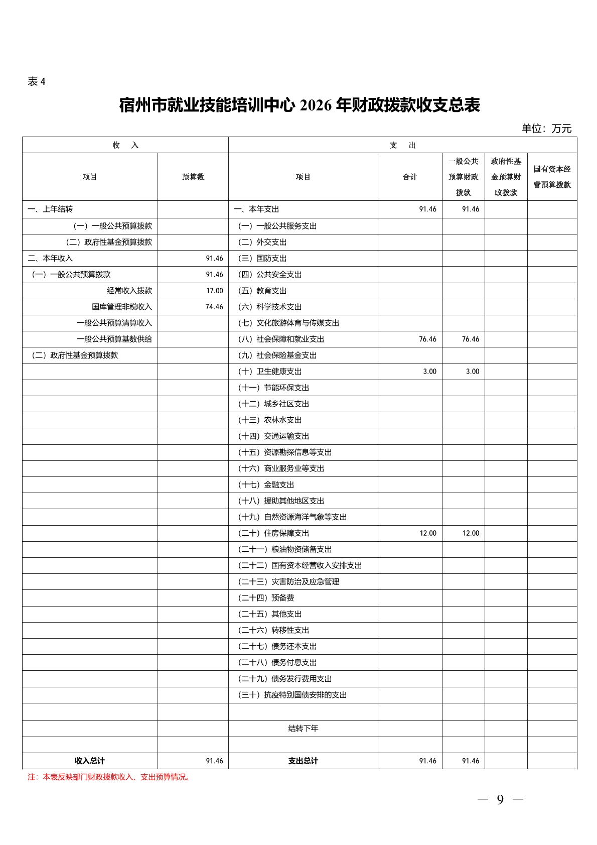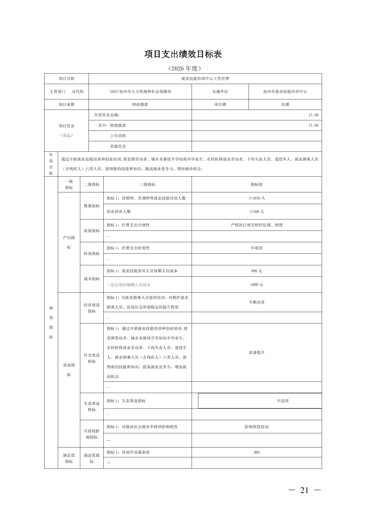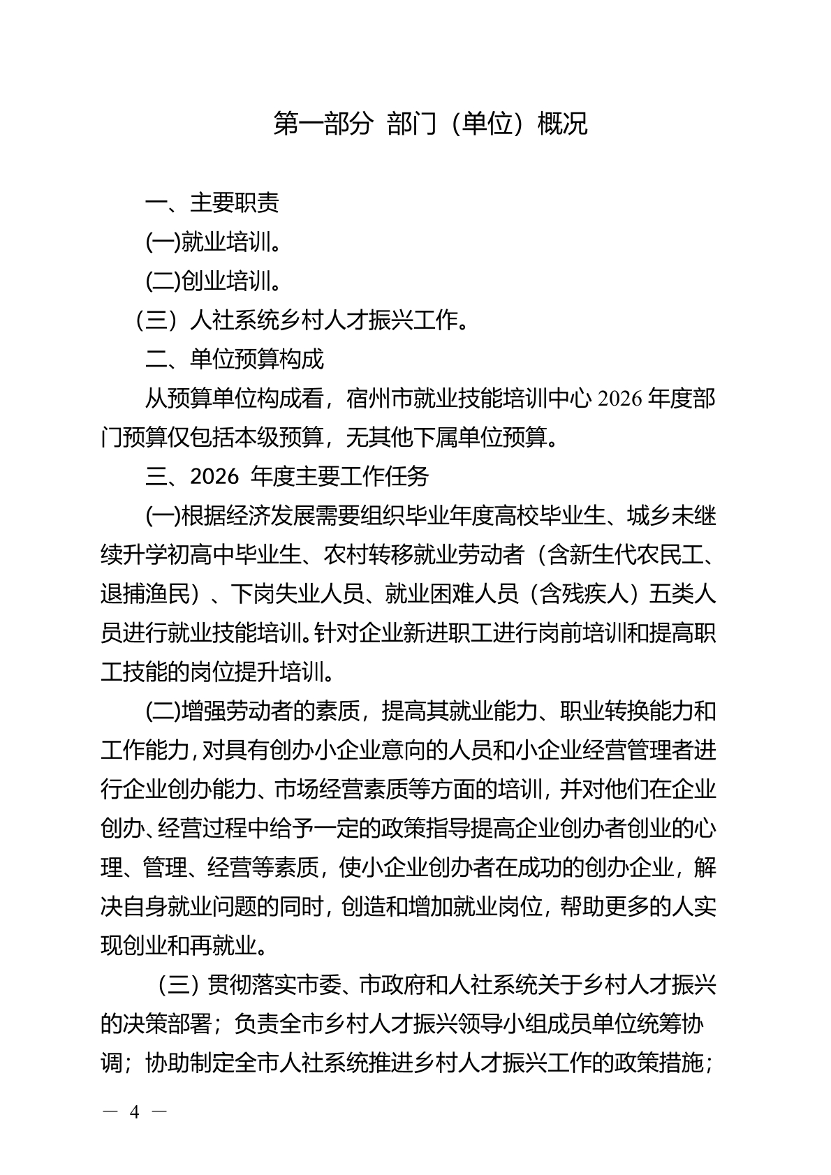 宿州市就业技能培训中心2026 年部门(单位)预算
