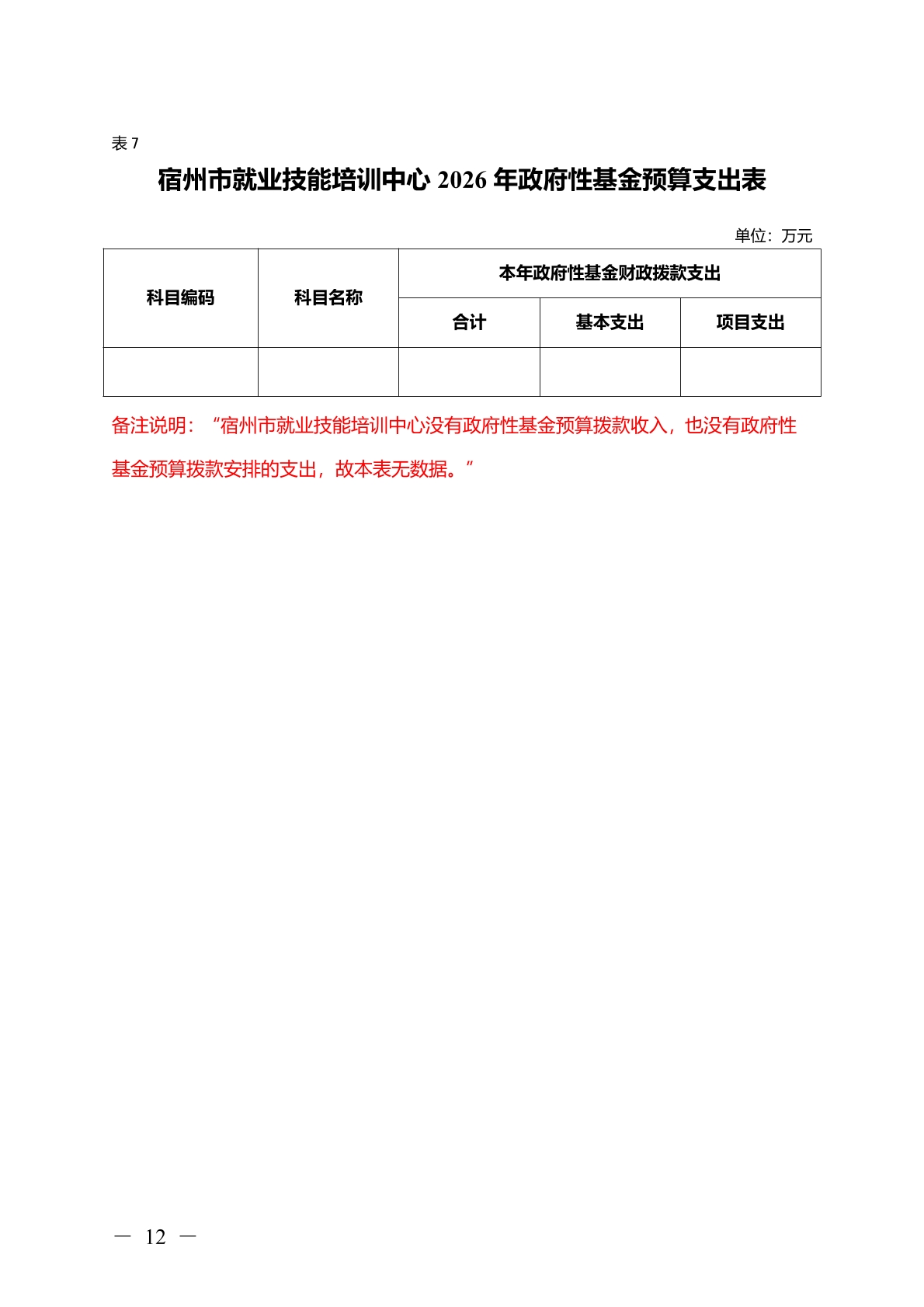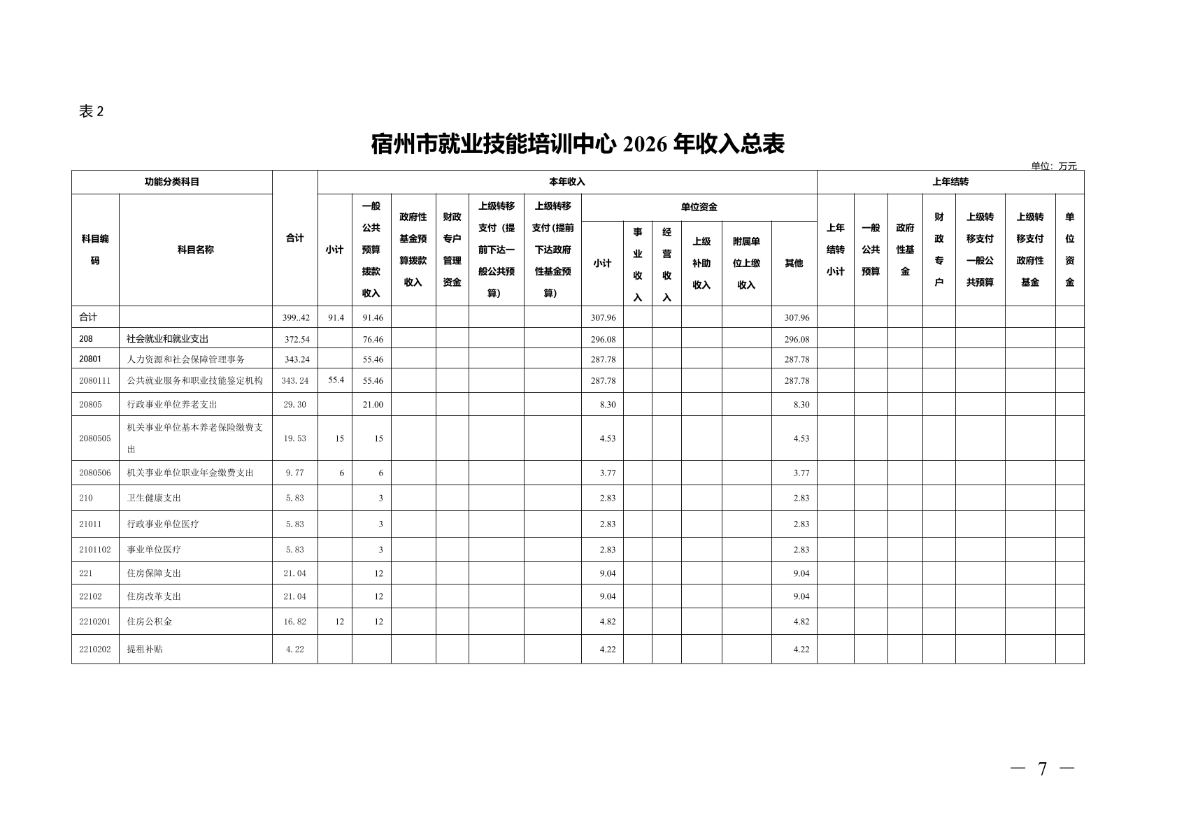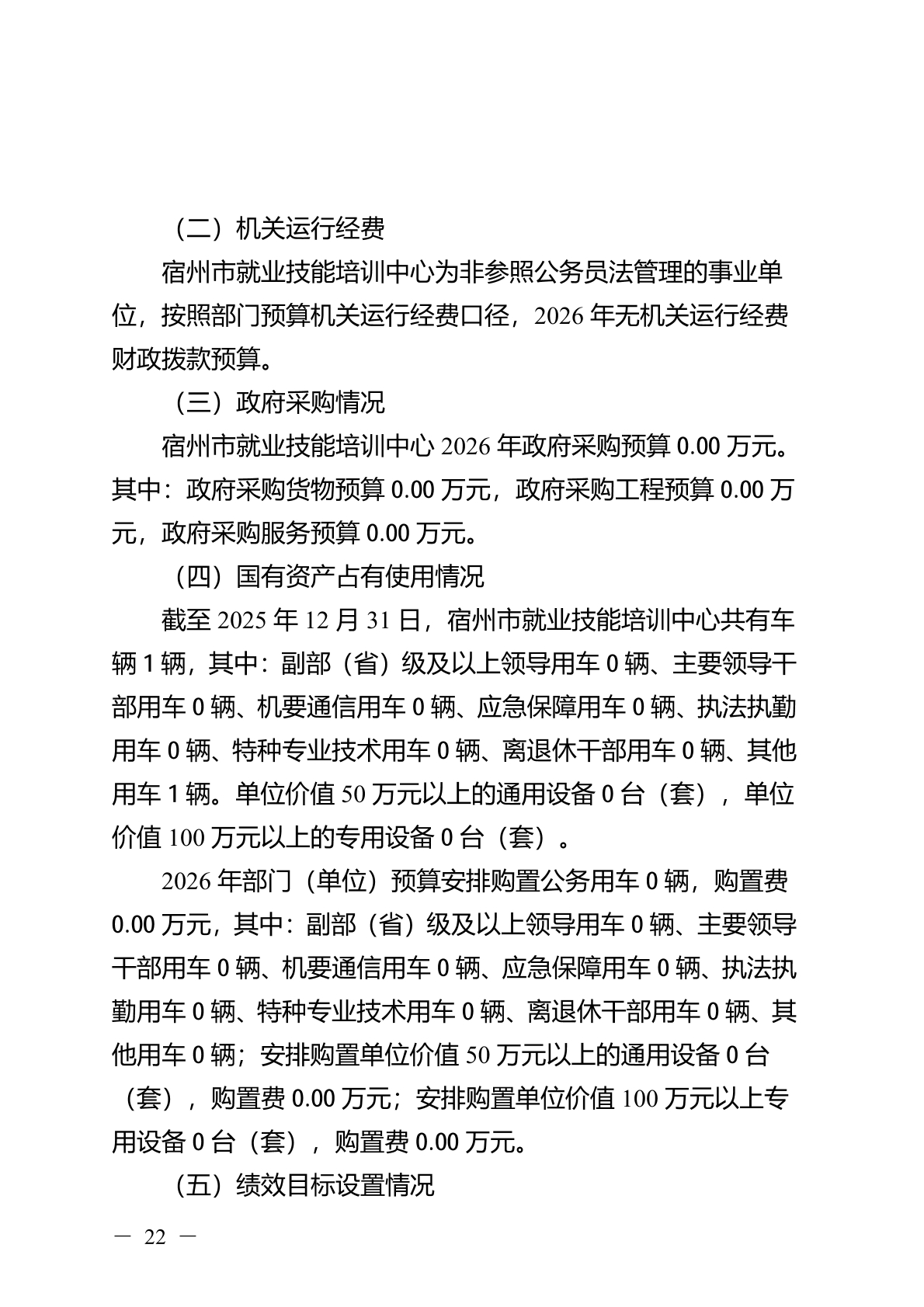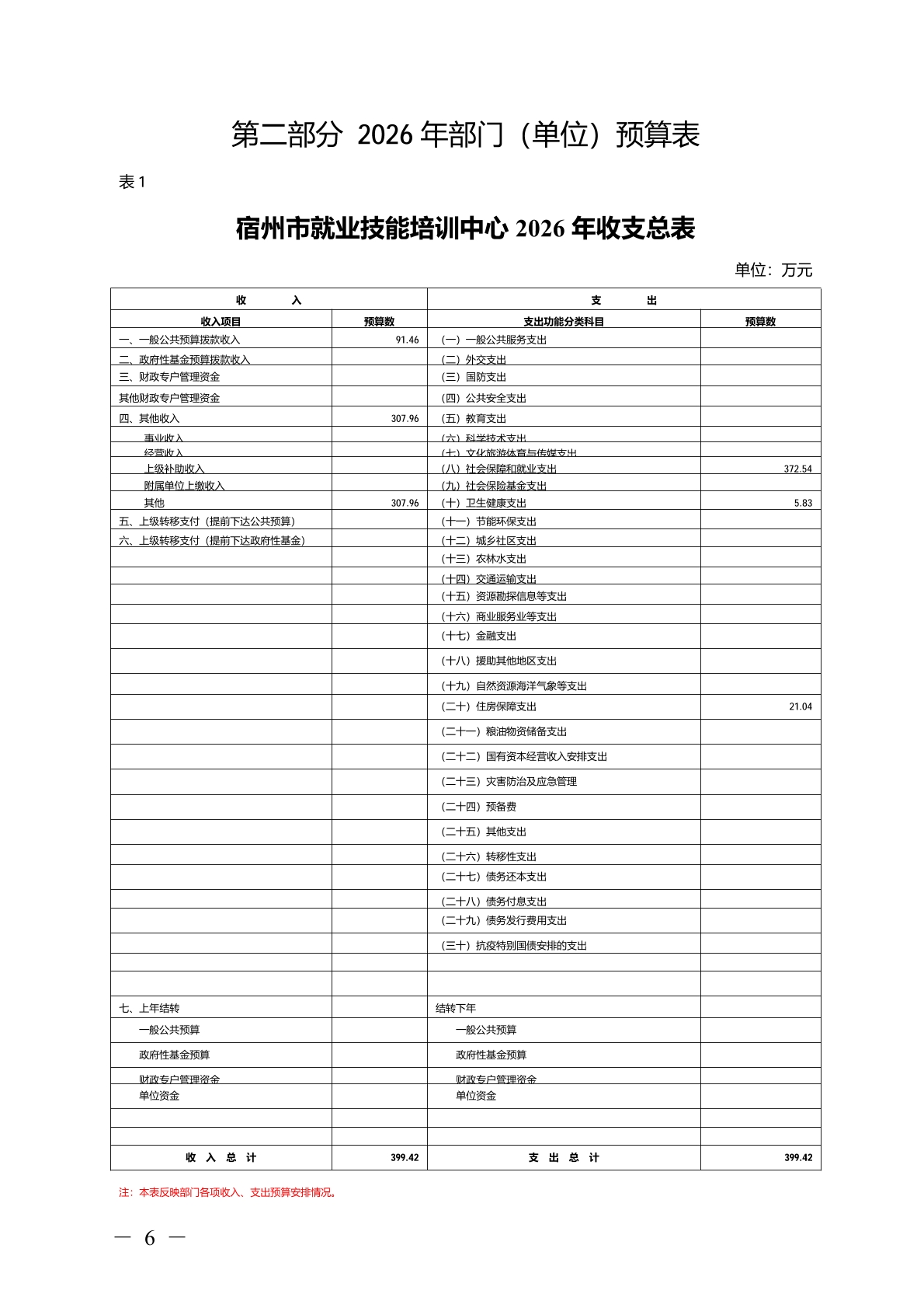 宿州市就业技能培训中心2026 年部门(单位)预算