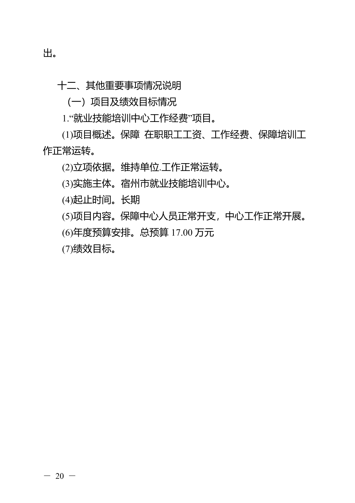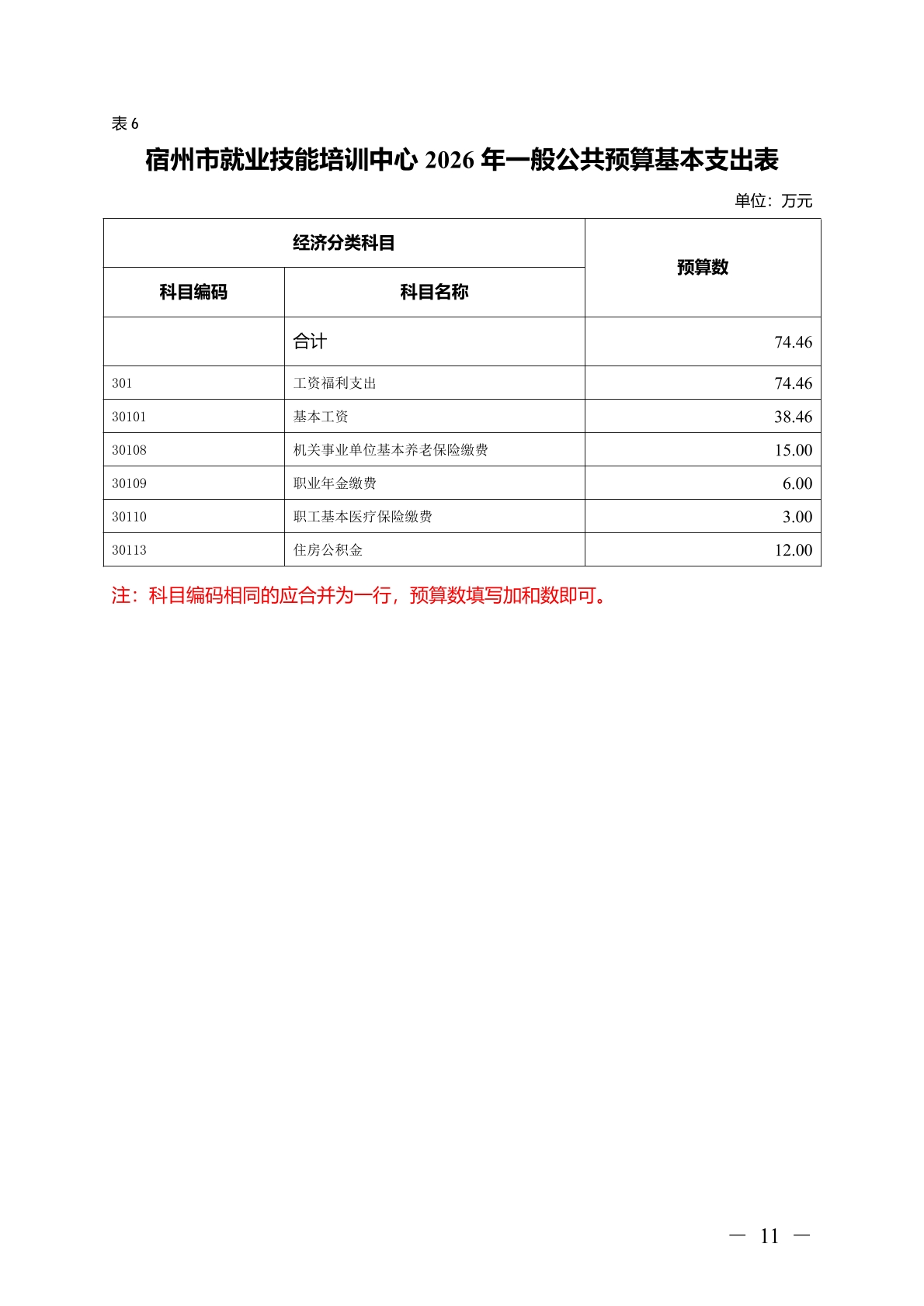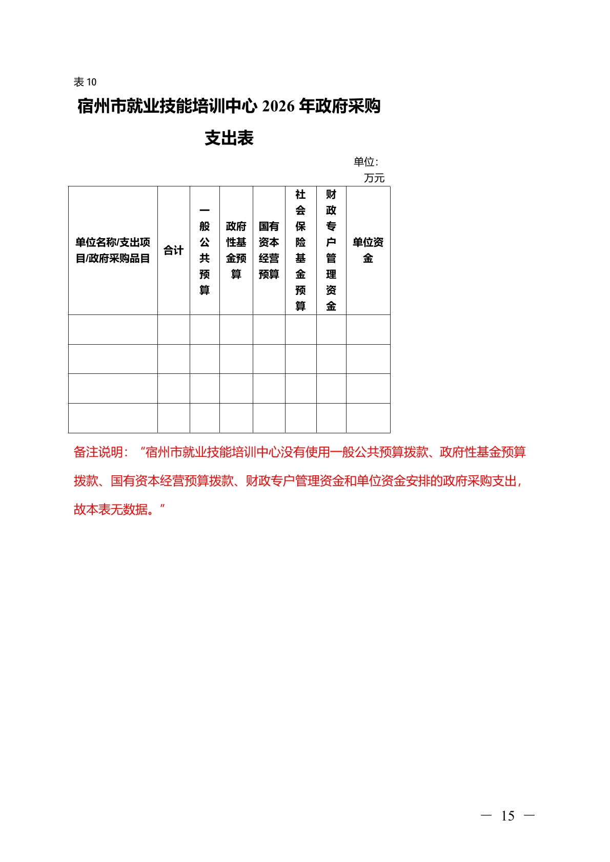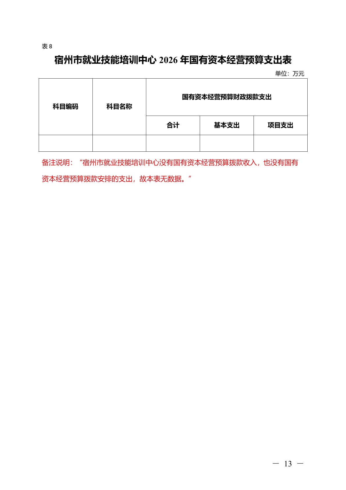 宿州市就业技能培训中心2026 年部门(单位)预算