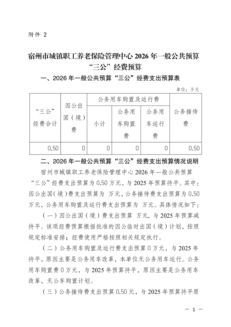 宿州市城镇职工养老保险管理中心2026年三公经费预算公开