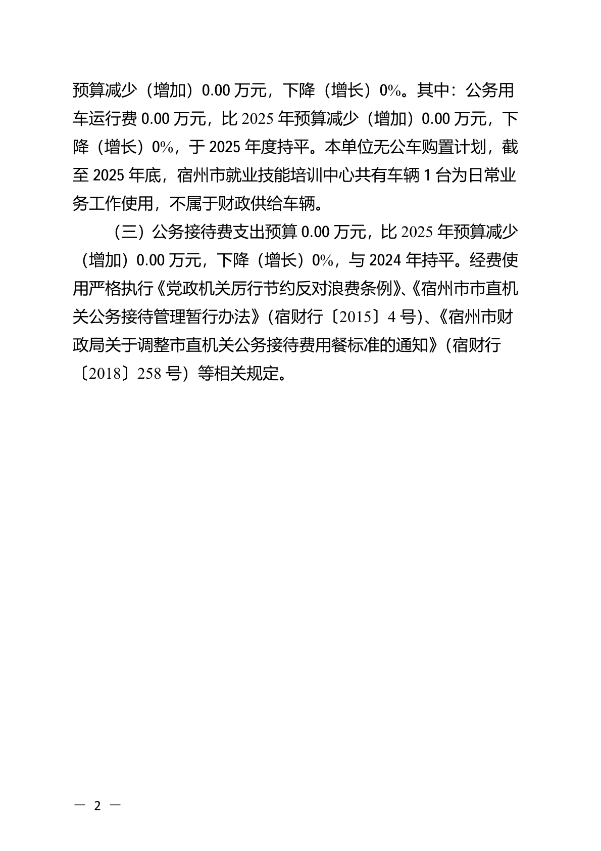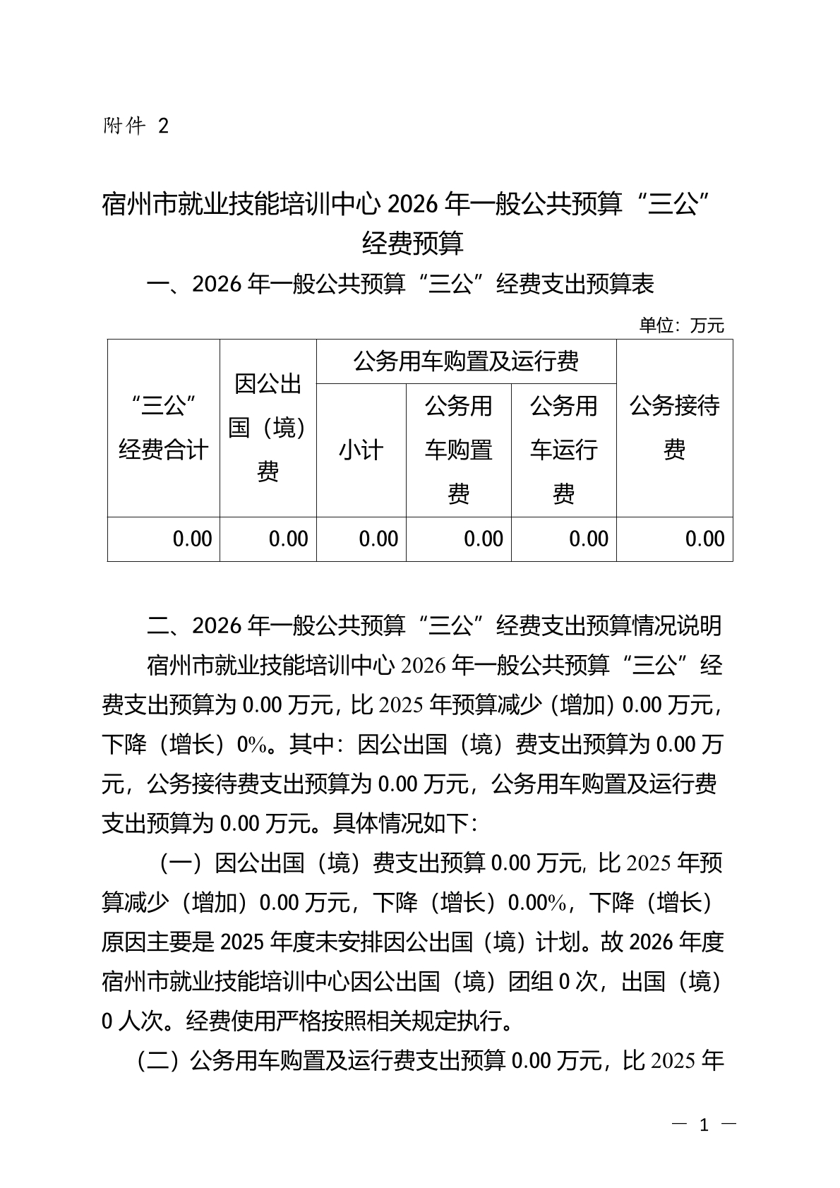 宿州市就业技能培训中心2026 年一般公共预算“三公”经费预算
