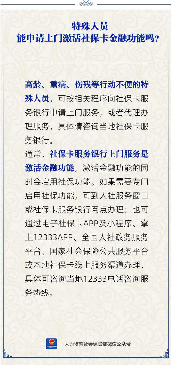 【人社日课】特殊人员能申请上门激活社保卡金融功能吗?