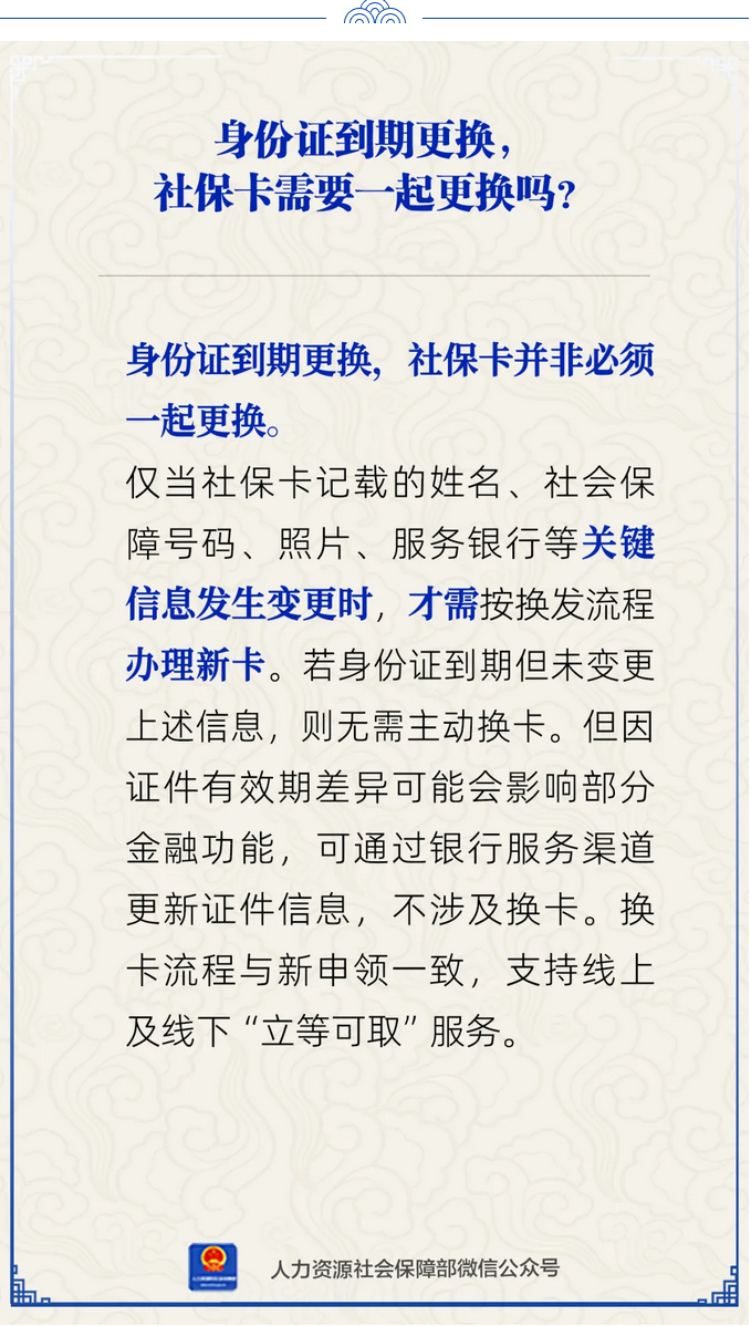【人社日课】身份证到期更换,社保卡需要一起更换吗?