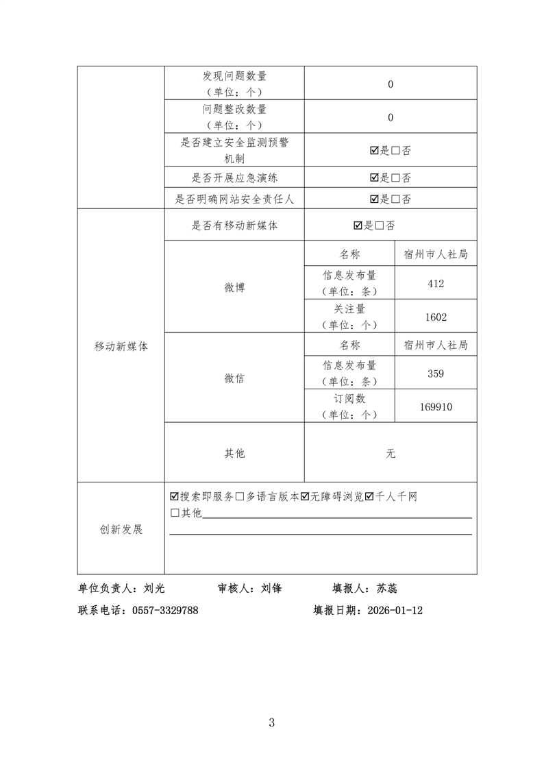 宿州市人力资源和社会保障局2025年度政府网站工作报表